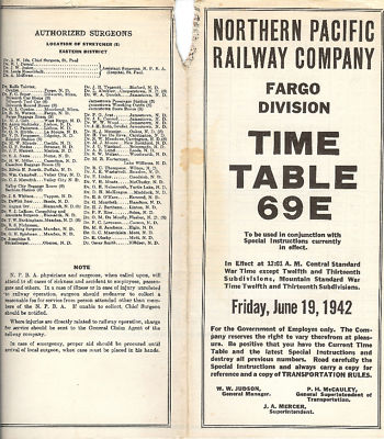 NORTHERN PACIFIC RY. - FARGO DIV - #69E - 6/19/1942