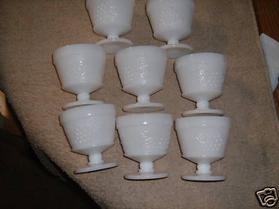 SET OF 8 WHITE MILK GLASS GRAPES ON VINE DESSERT DISHES
