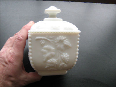 Westmoreland Milk Glass BEADED GRAPE Lidded Jar EXCLLNT