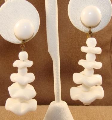 Vtg W Germany Ruffle Milk Glass Bead Dangle Earrings
