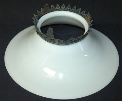 1900'S MILK GLASS SHADE BRASS CROWN FOR KEROSENE LAMP