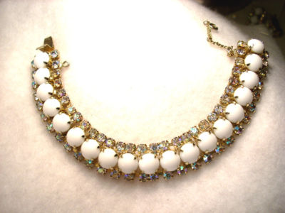 Vtg Cabachon MILK GLASS-AURORA BOREALIS BRACELET