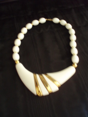 Title (ebay affiliate link): VINT Art Deco Trifari Gold & Milk Glass Beads Necklace