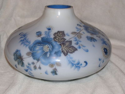 VINTAGE MILK GLASS BLUE CASED LAMP SHADE FONT PAINTED