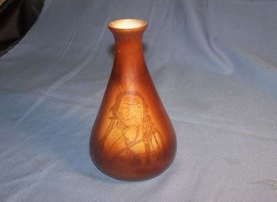 ANTIQUE MILK GLASS VASE WITH SITTING BULL