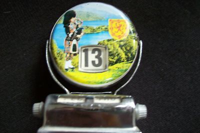 Vtg Perpetual Metal FLIP CALENDAR~SCOTLAND BAGPIPES