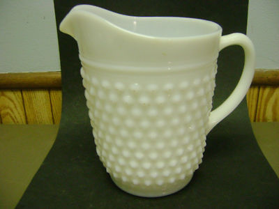 Vintage, Milk Glass, Water Pitcher, Hobnail Design.