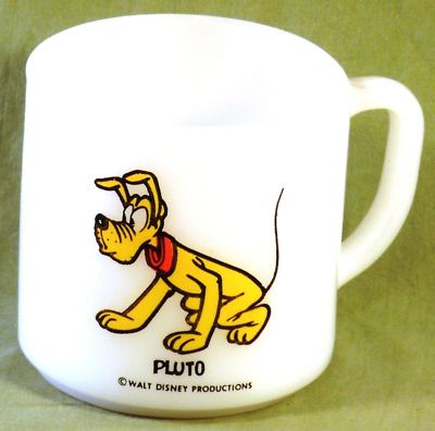 VINTAGE WALT DISNEY PRODUCTIONS PLUTO MILK GLASS MUG