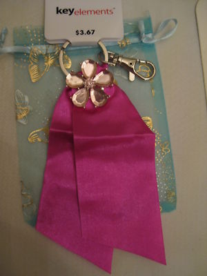 VTG RHINESTONE Satin Key Chain Key Ring Belt Clip NWT