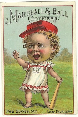 Baseball: 1880s Victorian Trade Card; "Fee Stykes, Out"