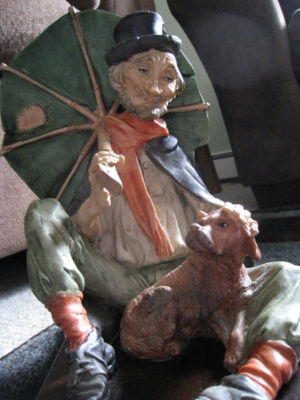 CAPODIMONTE OLD MAN HOBO WITH UMBRELLA & DOG FIGURINE