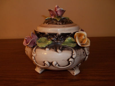 Title (ebay affiliate link): VINTAGE CAPODIMONTE PORCELAIN TRINKET BOX--ROSE FLORAL