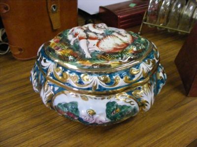 Title (ebay affiliate link): VINTAGE CAPODIMONTE BOWL COVERED TRINKET VICTORIAN 738