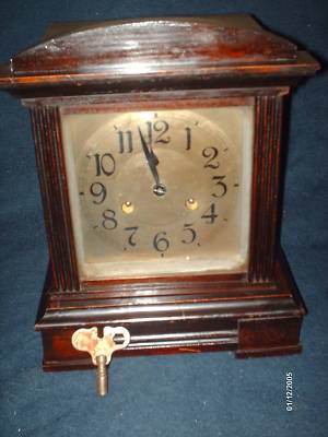 ANTIQUE GERMAN BRACKET CLOCK/CLEANED WORKING NICE NR