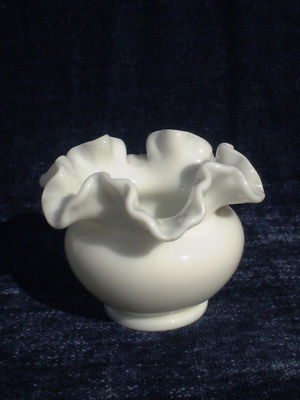 Vintage Fenton Milk Glass Ruffled 4 Inch Rose Bowl Vase
