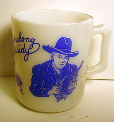 1950'S HOPALONG CASSIDY COWBOY MILK GLASS MUG
