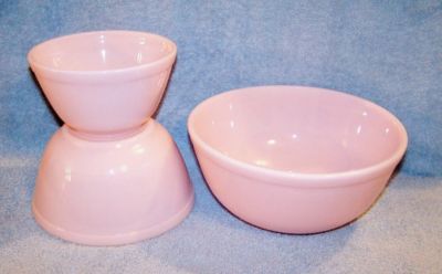 PINK MILK GLASS CROWN TUSCAN MIXING BOWLS NEST OF 3