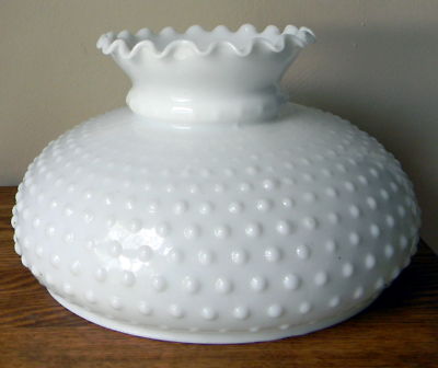VINTAGE MILK GLASS HOBNAIL LAMP SHADE 10 INCH FITTER