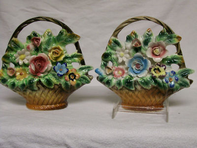 2 Vintage Flower Basket Wall Plaques Capodimonte like