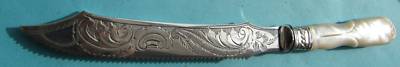 ANTIQUE WEDDING CAKE KNIFE,CARVED PEARL,ENGRAVED BLADE