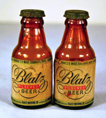VINTAGE BLATZ MINI BEER BOTTLES SALT AND PEPPER SHAKERS