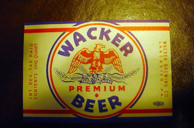 WACKER PREMIUM BEER LANCASTER,PA Rare Label