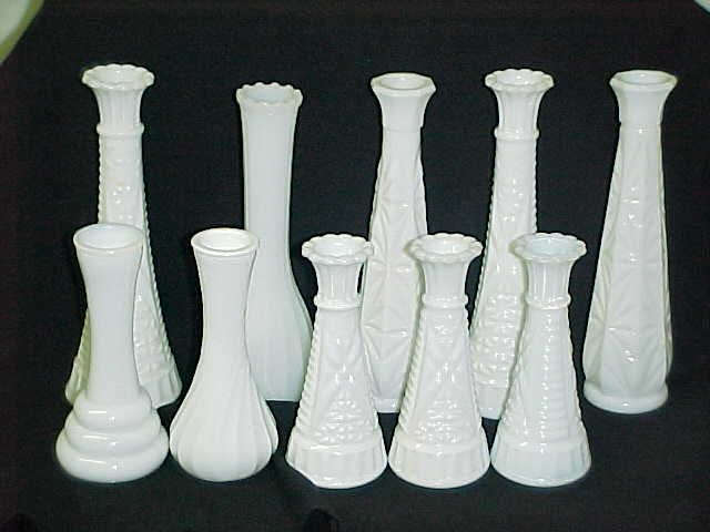 *10* vintag~MILK GLASS WHITE BUD VASES~DIAMOND~HOBNAIL~