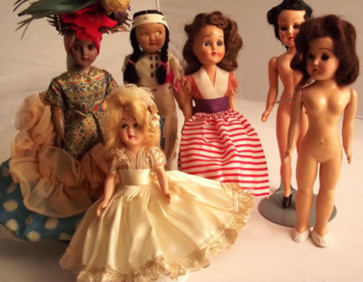 Lot of 6 Vtg Antique Hard Plastic Bisque Dolls Clothes