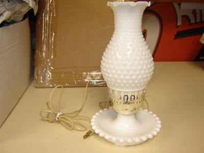 BEADED MILK GLASS ELECTRIC LAMP, 11" HIGH