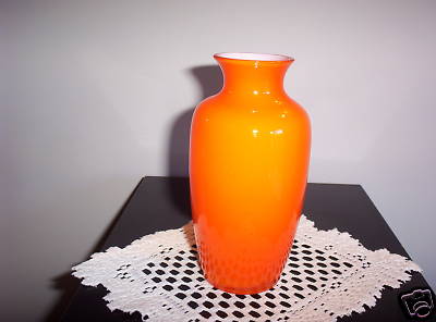 Antique Vase Round~~ Hot Orange Milk Glass~~ Stunning