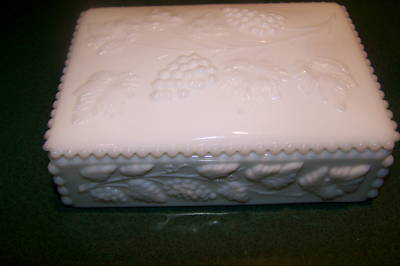 WESTMORELAND GRAPE PATTERN COVERED CANDY BOX MILK GLASS
