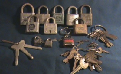 Lot of Vintage Brass~Metal Padlocks, Old Keys, etc