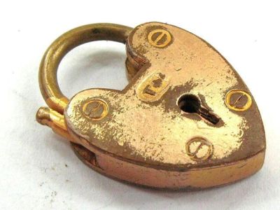 VINTAGE GOLD PLATE? HEART PADLOCK CLASP CHARM