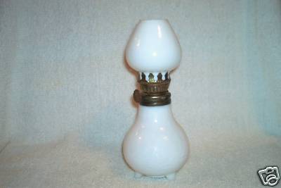 Vintage Miniature Milk Glass Footed Oil Lamp
