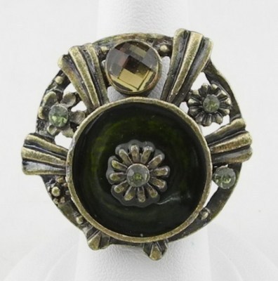 Vintage Style Antique Gold Tone Enamel class Ringr~G11
