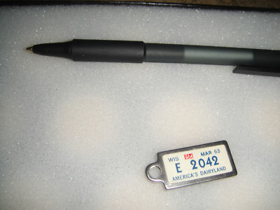 Title (ebay affiliate link): Vintage Mini Licence Plate Keychain MINT COND 1963 WI