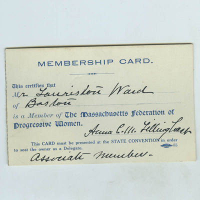 1910's Progressive Women Suffrage,MASS. Membership Card
