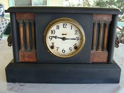 ANTIQUE RARE INGRAHAM BLACK MANTEL CLOCK 1800's