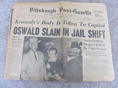 Title (ebay affiliate link): 1963 JFK FUNERAL OSWALD SHOT PITTSBURGH NEWSPAPER
