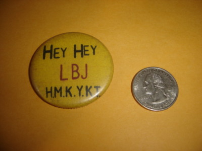 Title (ebay affiliate link): V/N ERA HIPPIE PROTEST HEY HEY LBJ HMKYKT PIN