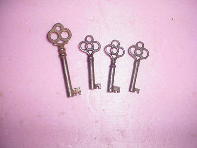 4 ~ Fancy Bow Antique Keys old Original / Furniture oak