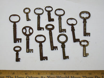 Title (ebay affiliate link): (13) ANTIQUE SKELETON KEY LOT FURNITURE*CABINET*LOCK NR