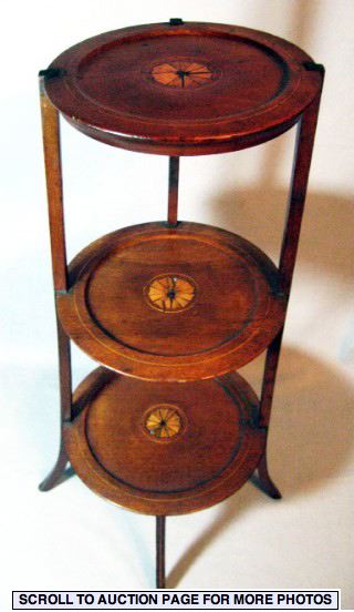 c1890 Inlaid Mahogany Muffin Pie Stand 3 Tiers