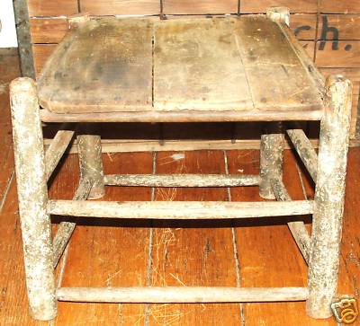 Title (ebay affiliate link): Primitive Wooden Stool-Large Seat-Make-do, Appalachian?