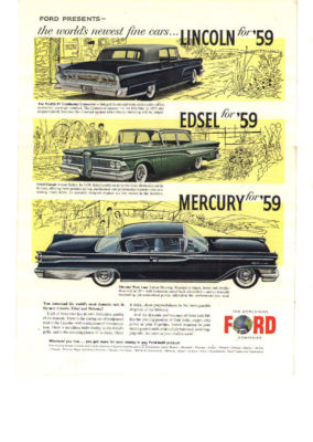 Ford Edsel ad, 1958, with Mercury, Lincoln