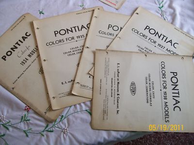 ORIG 1934-35-36-37-38 PONTIAC Color Chips Charts Dupont