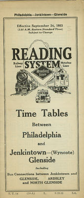 PTT Reading RR Phila & Jenkintown Glenside Sept 24 1933