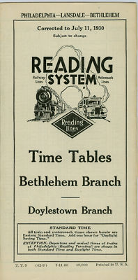 Title (ebay affiliate link): PTT Reading RR Time Table Bethlehem Branch July 11 1930