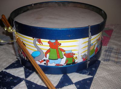 VINTAGE OHIO ART 11" TIN SNARE DRUM w 2 DRUMSTICKS