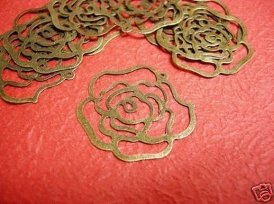 12pc antique bronze metal rose pendant-2908